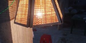 We offer a handcrafted Bamboo Ambient Glow Ceiling Lamp Shade made from woven bamboo in a natural tone color. The grid-style lattice weave pattern and trapezoidal multi-panel frame create a rustic-industrial aesthetic. This 12-inch height X 9-inch width lamp shade emits a warm ambient glow, perfect for ceiling decor. The matte polish finish adds a touch of elegance to the sustainable and eco-friendly design. Ideal for manufacturers and suppliers looking to provide unique and stylish lighting options.