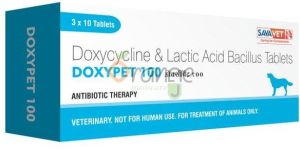 We offer Doxypet 100mg Lactic Acid Bacillus Tablets, a veterinary product with a shelf life of 2 years. These tablets come in a convenient strip packaging of 1x10 strips, containing doxycycline as the active ingredient. Ideal for exporters, suppliers, and traders, our tablets are easy to administer and effective for various veterinary applications. Trust Doxypet for quality and reliability in tablet form, ensuring the well-being of animals. Choose Doxypet for a trusted brand name in the industry.