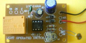 Light Operated Switch is a very commonly used circuit to control outside lighting or used for driveways and garage entrances. Light Operated Switch is very simple and inexpensive design, which uses timer IC555 (IC1) and Light Dependent Resistor or LDR as a sensor. LDR has unique feature that in presence of light it has very low resistance. However, when light falls on it is interrupted, its resistance increases to a very large value. This feature is used to trigger IC1, which operates in monostable mode.About the Circuit :In presence of light, LDR or R3 as shown in the circuit diagram has very low resistance. Hence, voltage at trigger pin2 of IC1 is above 1/3Vcc. In this case, the output of IC1 at pin3 remains low and relay is not energized.As soon as light falls on LDR gets obstructed due to the movement of some objects, the voltage at pin2 goes below 1/3Vcc. At this moment, IC1 is triggered and the circuit is switched on. The output at pin3 becomes high and relay is energized. The output remains high as long as light is obstructed.