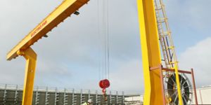 Electro-Fab has the technology and facility to both design and manufacture complete gantry systems.Gantry cranes have become a widely accepted alternative to overhead bridge crahes. this type of crane is similar to the bridge crane except that it runs on a runway at the floor level. the bridge is supported by a pair of rigid steel legs which are carried by a pair of end trucks along the floor level runway.