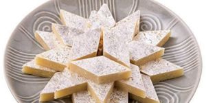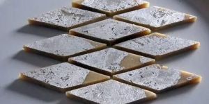 Kaju katli, also known as kaju barfi, is a traditional Indian dessert characterized by its diamond shape, made with cashew nuts, sugar, cardamom powder, and ghee butter. This sweet treat often comes wrapped in an edible silver foil, signifying luxury and appreciation for the consumer. It is traditionally consumed during the Diwali festival, but it is also an ideal gift for friends and family on special occasions. In Indian culture, it is believed that by consuming kaju katli, one brings good luck and prosperity to his home.