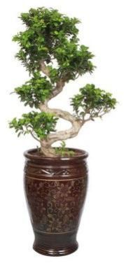 "This 15 years old 'Multi Curved' or 'S-Shaped' Bonsai of Ficus in an elegant brown ceramic pot is a breathtaking piece of green art for your interiors. It goes without saying that the older a tree, the more valuable it will become and this 15 years old Ficus Bonsai plant says it all. Bonsai is a traditional Japanese art from using miniature trees grown in a container. Bonsai trees symbolize peace, balance and harmony and are rare and beautiful trees to behold. Bonsai trees not only work as an attractive conversation piece but also benefit for your health in many ways. Growing and tending a Bonsai is a great hobby and a wonderful stress reliever. By absorbing harmful gases like Xylene, Toulene and Formaldehide our bonsais work as great stressbusters and air purifiers. ( A study of interior landscape plants for indoor air pollution abatement: an interim report. NASA. July, 1989.) Our R&D team at Nurturing Green travel across the world to bring to you exotic, artistic and rare """"S"""" and """"I"""" shaped Bonsais which enhance the aesthetics of any room. As the beauty of these plants lies in their uniqueness, it is not possible to provide you two exactly same plants. By the same token the plants shown here in the image should be considered only as a representation of that particular category and not the exact plant as the original one delivered to you may vary in appearance to the one shown in the picture. Similar is the case with their planters. As we have a huge variety of these exotic planters coming from different parts of the world, therefore, it is a tough job to avail each one of such planters all the time. That is why you are requested to consider them as a representation only. Although, we will share the final images of the plant & planter with you for your confirmation before dispatching the order. """" Also,