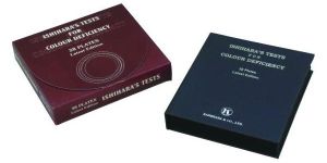 For detecting colour blindness. Comprises a series of plates bound in book form. Each plate has a mosaic pattern of dots with a different coloured design, such as a numeral, in the centre.
