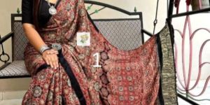 Number Of FlowerTraditional Ajrakh Saree