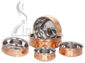 SS SERVING COPPER HAMMERED HANDI