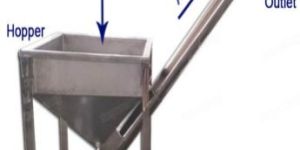 Body is having an inlet side and an outlet side at both ends which are diametrically opposite sides. A big hopper can also fitted at inlet side to feed the screw conveyor during working. Normally, a screw conveyor is used to feed powdered material in vertical directions. These conveyors are capable of lifting powder even in 90 degrees. Machine can be independent with self standing frame, or it can be attached to some other units as per required. A variable inclination adjustment bracket can also possible to add in this machine.