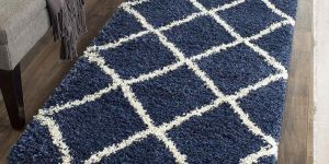 Premium Blue with Ivory Beautiful Micro Bedside Runner Shaggy Rug