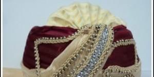 This wedding safa is made from Rajasthani bandhani type printed cloth.Embroided zari and beads work makes this safa very attractive.