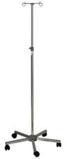 Budget design, 5 castor, stainless steel, IV / Drip stands.Double hook IV pole, (DP/2h), 1200mm long, allowing height adjustment from 1270mm to 2000mm.50mm twin polypropylene swivel castors, (1 x antistatic, 1 x braking)Supplied boxed for on-site assembly by the customer.w 1230 x d 290 x h 100mm, 3.4kgs
