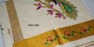 Kerela Cotton Peacock Embroidered Sarees
