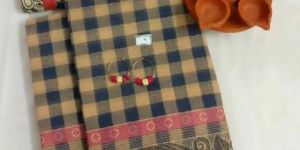 Traditional Checked Cotton Sarees with Kalamkari Blouse