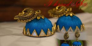 BLUE SILK THREAD EARING