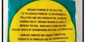 Dosage:Dissolve 2 kg of ROM-BIO COMPOST MIX 1 in 150 liters of water and sprayed thoroughly on 1 tone size of farm waste biomass along with cow dung slurry Applications: ROM-BIO COMPOST MIX 1 will convert your farm waste into an enriched organic farm manure within 3 months.