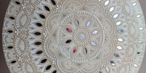 We offer exquisite Lippan Art from India, featuring a polished round shape in a pristine white color. Ideal for decoration, this printed patterned art piece comes with mounting options for easy display. Handcrafted with a shiny look, each piece showcases the rich cultural heritage of India. Elevate your space with this unique and elegant Lippan Art that adds a touch of sophistication and charm to any room.