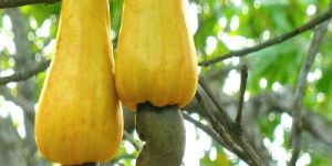 Cashew tree is a tropical evergreen tree that produces the cashew seed and the cashew apple. Its evergreen leaves are oval, leathery and dark green. Cashew apple is high in Vitamin C, refreshing, very juicy, but a bit acidic.