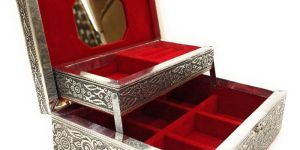 Product OverviewA jewelry box patari is a traditional Indian storage box designed specifically for holding jewelry and precious trinkets. Known for its compact rectangular or square shape, the patari features intricate artistry and is often used for personal storage or as a gifting item during weddings and special occasions.Key FeaturesMaterial: Commonly crafted from wood, sometimes combined with metal, glass, or fabric to enhance aesthetics and durability.Design: Embellished with decorative techniques such as hand-painting, embossing, inlay work, zari embroidery, and gemstone or mirror accents. Popular styles include oxidized gold finish, Rajasthani artistry, and traditional motifs.Size: Typically available in small to medium dimensions (e.g., 5x7 inches), making it ideal for safekeeping rings, earrings, necklaces, and bangles.UsesJewelry Storage: Keeps jewelry organized and protected in dedicated compartments or padded sections.Gifting: A preferred choice for weddings, festivals, and milestone celebrations as it symbolizes care and tradition.Decorative Accent: Adds vintage charm and handcrafted appeal to dressers, closets, or vanity tables.Customization OptionsChoose from various materials, sizes, and finishes to suit individual tastes or event themes.Personalization available with engraving, embossed initials, or custom color palettes.Options for coordinating with wedding trousseaus or themed gifting sets.Contact for customization, pricing, and bulk orders.