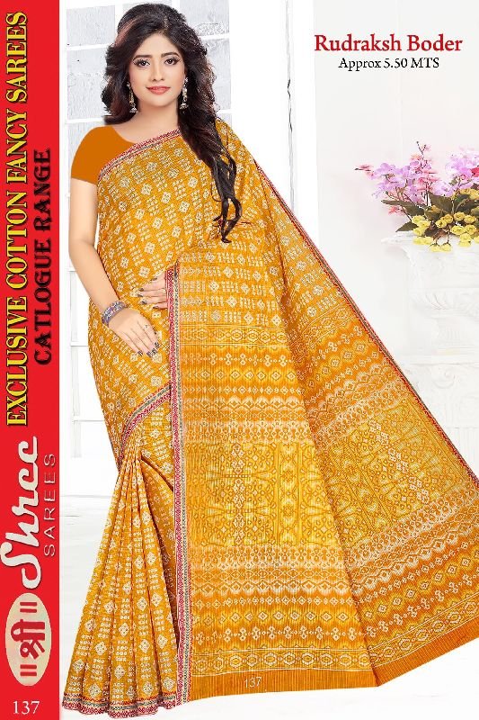 Printed Zari Border Gadwal Sarees offered by us are highly demanded by the customers due to their charming color combinations and ecstatic patterns. We are reckoned among the reputed Manufacturers, Exporters, and Suppliers of Printed Zari Border Gadwal Sarees from Gujarat, India. The Printed Zari Border Gadwal Sarees that we offer are suitable for semi-formal parties, birthdays, and pre-marriage functions.