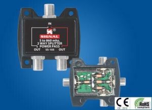FEATURES Items are checked by fully automatic Synthesized PC Based Vector network Analyzer (1300 Mhz.) Final Production Graph Available on Request High Quality "F" Type Connectors Standard Taps & Splitter In High Port To Port Isolation & Excellent Return Loss Made With Key Components From Japan Splitters Are Available In One Port Power Pass & All Port Power Pass Taps & Splitter In Power Passing Up To 15 Amp. Have Special Design Power Passing Coils With Perfectly Matched Micro Henry Which Does Not Disturb Rf Signals While Trans Mitting A.C. Current Along With At Also Avoids Hum Modulation. Powder Coated Graded Aluminium Die. Cast Construction For All Weather Protection. Ready to Digital Frq. Band Outdoor Tap & Splitters are 100 % Waterproof TECHNICAL SPECIFICAION FREQ. RANGE 5 to 1000 mhz RESERVE PATH FREQUENCY 5 TO 40 mhz POWER PASSING 15 AMP 60V AC 50/60hz. IN/OUT IMPENDENCE 75 ohms V.S.W.R. (2 db below) FLATNESS : +/- 1 db RETURN LOSS 15 db. (min)