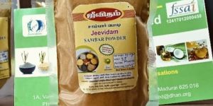 We offer Jeevidam Sambar Powder in a convenient 50 gm plastic packet, with a shelf life of 12 months. This light brown powder is made from high-quality coriander, perfect for preparing authentic South Indian sambar. Proudly manufactured, exported, and supplied from India, our product is FSSAI certified. Store in a cool place to maintain freshness. Elevate your culinary experience with our premium sambar powder, a must-have for every kitchen.
