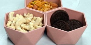 these unique multi-faceted bowls are inspired by origami. crafted from argi waste in eclectic pastel hues these will surely add oomph to any dining table. go ahead flaunt!