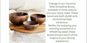 Coconut shell smoothie bowls made from coconut shells, chemical free polish and durable.