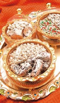 Gold/ Silver foil (leaf), or varakh, as it is generally known in India, adds glitter to Indian sweets, supari, paan, and fruits. It is also used in Ayurvedic medicines and on deities in many Jain temples. The silver-topped sweet is even served as 'prasad' in temples and on auspicious and religious as well as family and social occasions. Varakh is used in flavored syrups as in kesar (saffron) syrup, and also finds use in cosmetics.