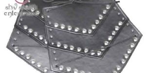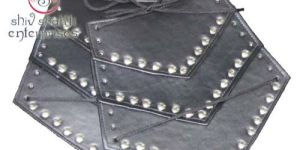 This arm guard set is made of leather and accented with metal studs. They are fully adjustable to fit most adult arms. Bettle throughout the medieval period required soldiers to protect themselves from deadly blows to the body. Arm guards protected knights from losing a hand as a result of a sword's swing. This Roman leather arm guard set will be a great addition to any Medieval costume armor collection.