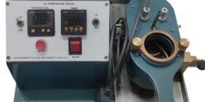 Device Description : The instrument chamber has an orifice for holding the liquid medium and a clamping device for holding the material. The penetration timer stops automatically after releasing the sample holder. Double processed castor oil having viscosity of 700 ± 30 centipoises at 250 C or mineral oils of the same viscosity and comparable wetting characteristics are used.