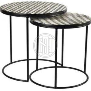 Round Nesting Side Tables with Black and White Geometric Tops