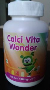 Calci vita wonder is a calcium supplement with vit.d3. It is 2.5 gram gummy in teddy bear shape with four different flavours & respective colours. Children don't drink milk & they do not play in sunlight also, so they are deficient in calcium & vit.d3. We provide innovative solution for the same. Our gummy contains 100 mg elemental calcium & 200 iu of vit.d3. Children enjoy eating it as it does not have soily taste.
