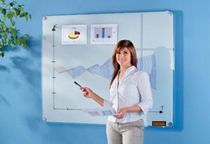 Glass Boards have become extremely popular in the modern day office, training centre or even the home environment. Exclusive whiteboards made of 6 mm thick, pre-stressed safety glass with rounded corners. Completely smooth surface with white, grid imprinted light filter on the back side. Can be written on with dry-wipe board markers. They are mounted using 4 decorative aluminium holders, Ø 55 mm. A 14 mm gap behind the board gives the impression of a "floating" type mount.