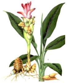 Curcuma longa is a perennial herbaceous plant belonging to the Zingiberaceae family, commonly known as the turmeric plant. It has large, broad, lance-shaped green leaves that grow up to 1 meter in height and produces cone-shaped inflorescences with pale yellow flowers. The plant thrives in warm, humid climates with well-drained, fertile loamy or sandy soil and prefers partial to full sunlight. It propagates through underground rhizomes, which are thick, aromatic, and yellow-orange in color. The ideal growing temperature ranges between 20°C to 35°C, with a crop duration of approximately 7 to 9 months. Mature rhizomes are harvested once the leaves start drying and are then boiled, dried, and ground into turmeric powder. Curcuma longa is cultivated for its culinary, medicinal, and dyeing properties and contains the active compound curcumin, known for its anti-inflammatory and antioxidant effects.