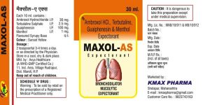 We are offering maxol as. Unique combination of ambroxol trbutaline guiaphenasine mentho beneficil for wet cough available in 60 ml and 100 pet bottle