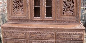 Brown Hand Carved Wooden Storage Cabinet