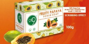 We offer a 100g Fruity Papaya Scrub Soap crafted with Papaya Extract, ideal for all skin types. Our Herbal Papaya variant features a delightful Papaya scent and a gentle scrub texture that exfoliates the skin. Formulated with natural ingredients, this soap provides a refreshing and rejuvenating bathing experience. Pamper your skin with the nourishing benefits of papaya while enjoying the invigorating herbal formulation. Elevate your skincare routine with our Fruity Papaya Scrub Soap, proudly manufactured to deliver quality and effectiveness.