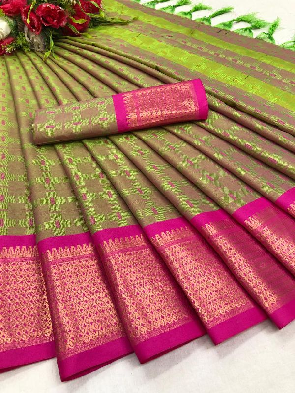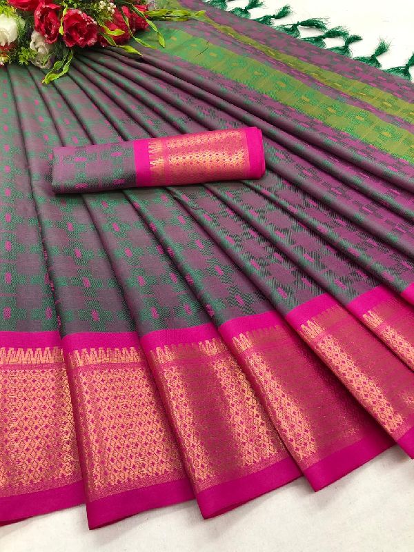 Vf- Cotton Crape Banarasi Blouse saree