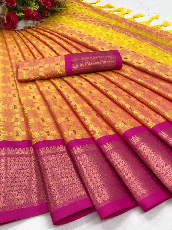Women Soft Banarasi Silk Saree With Zari Weaving Meenakari Touchup Sa