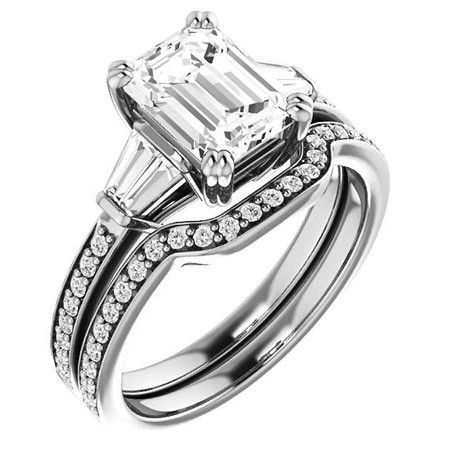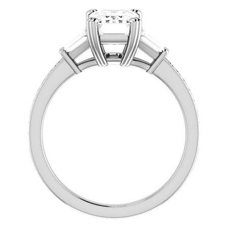 Emerald Moissanite & Baguette Diamond Engagement Ring