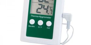 This therma-hygrometer simultaneously displays both the humidity and temperature in addition to indicating and recording the maximum and minimum readings.