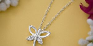 Ladies Butterfly Zirconia Stone German Silver Pendant With Chain