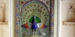 Glass Inlay Work on Wood Casted Peacocks