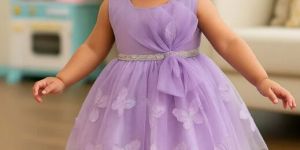 Add a flutter of charm to your little ones look with this butterfly-embroidered girls frock, crafted in soft net layers with a stylish bow at the waist. The sleeveless design ensures comfort, while the shimmery waistband adds a festive sparkle. Available in Onion and Purple shades, this baby frock is perfect for birthdays, parties, and special celebrations.