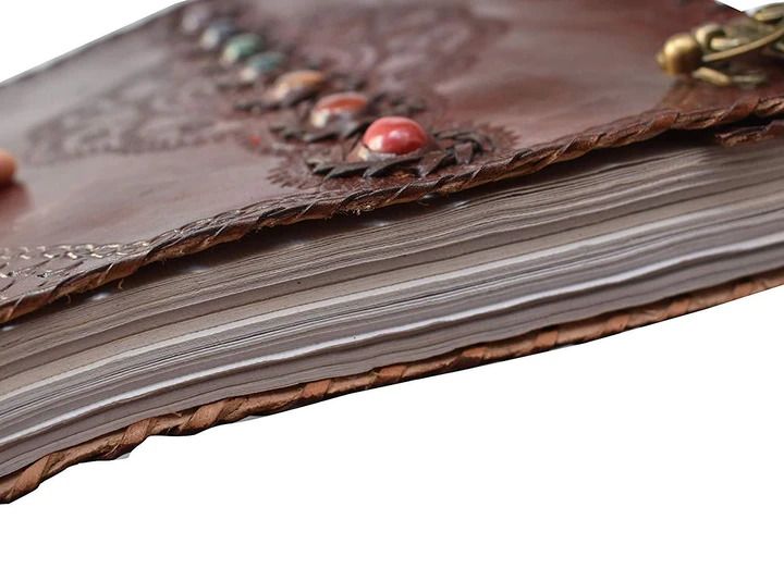 Handmade Leather Journal With Center Stone - 2 Lock