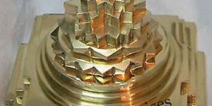 consecrated place. A three dimensional yantra is made of brass shree yantra