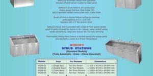 capacitiessingle bay – for one persondouble bay – for 2 persons3 triple bay – for 3 persons & bigger custom made multi bays stationsconstruction : complete construction stainless steelchoice of operations : knee operated (semi automatic) automatic operated models manual elbow operated modelstaps : manual elbow operated or automatic infra red sensorsoap dispensers : manual or automatic operatedonline filters : optional at extra costjet washer : optional at extra costgeyser : for hot water: optional at extra costelectrical : 220-230 v 50 hz single phase.