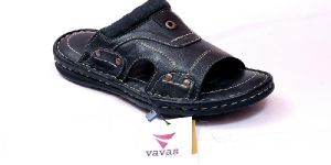 VAVAS MENS BLACK LEATHER SANDAL