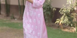 ladies chicken kari printed suits, White Cotton Kurt